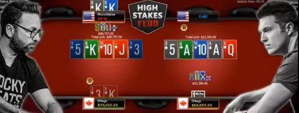 Polk与丹牛的单挑赛第17个回合在本周三开始了美天棋牌比赛。Polk再次取得胜利。三个小时的美天棋牌比赛时间里,两人共完成了662手牌。美天棋牌比赛过程十分的精彩,双方各自混合了一些大的诈唬,打出了一些大牌,并用坚果进行了check-raised。
