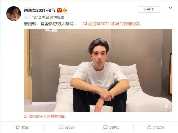 【美天棋牌】《创造营2021》高人气选手和马宣布因家庭原因退赛