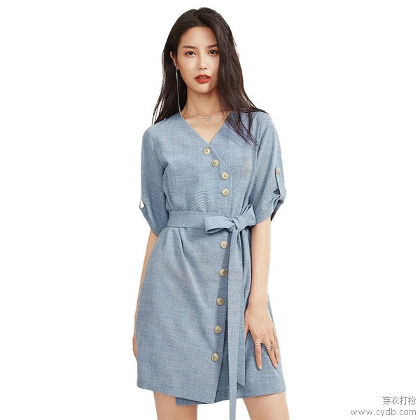 这种一片式围裹裙在今夏大热,它又叫“茶歇裙”,优雅闲适很有贵族范,对身材不限,上V领下开叉凸显性感身材,撞色纽扣点缀强化曲线轮廓,将视线集中到曼妙的S曲线上。