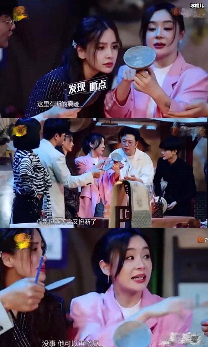 在《巧手神探》节目上,袁姗姗、杨颖、杜海涛、谭卓、周震南等一起观赏文物,这是经过专家修复的汉代文物。谭卓听到文物的年限后吓得不敢碰,而袁姗姗则对文物很好奇,也迫不及待的想摸一下文物,专家也告诉大家文物都是真的,也告诉大家怎样正确拿文物,一手拿顶一手托底,这样能防止修复好的断,再次发生断裂。