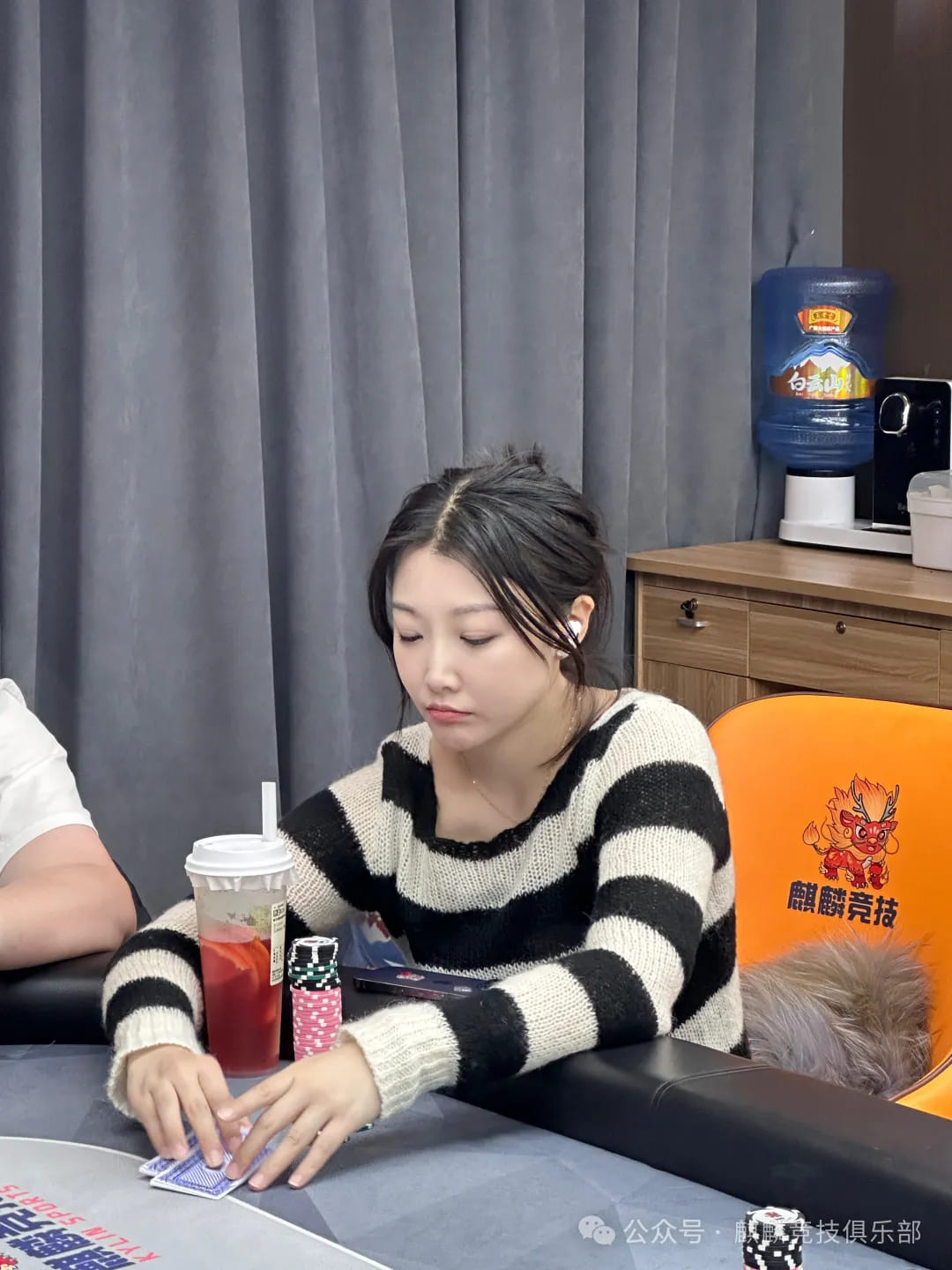 本局结束后,朱泾轩无奈笑笑“我今天形象非常好,秀了两把AA,三把QQ,这把KK开枪打出来竟然被这样打掉了~”好在朱老师力挽狂澜,经过多次db又重新将记分牌积累了起来,最终顺利晋级决赛圈!